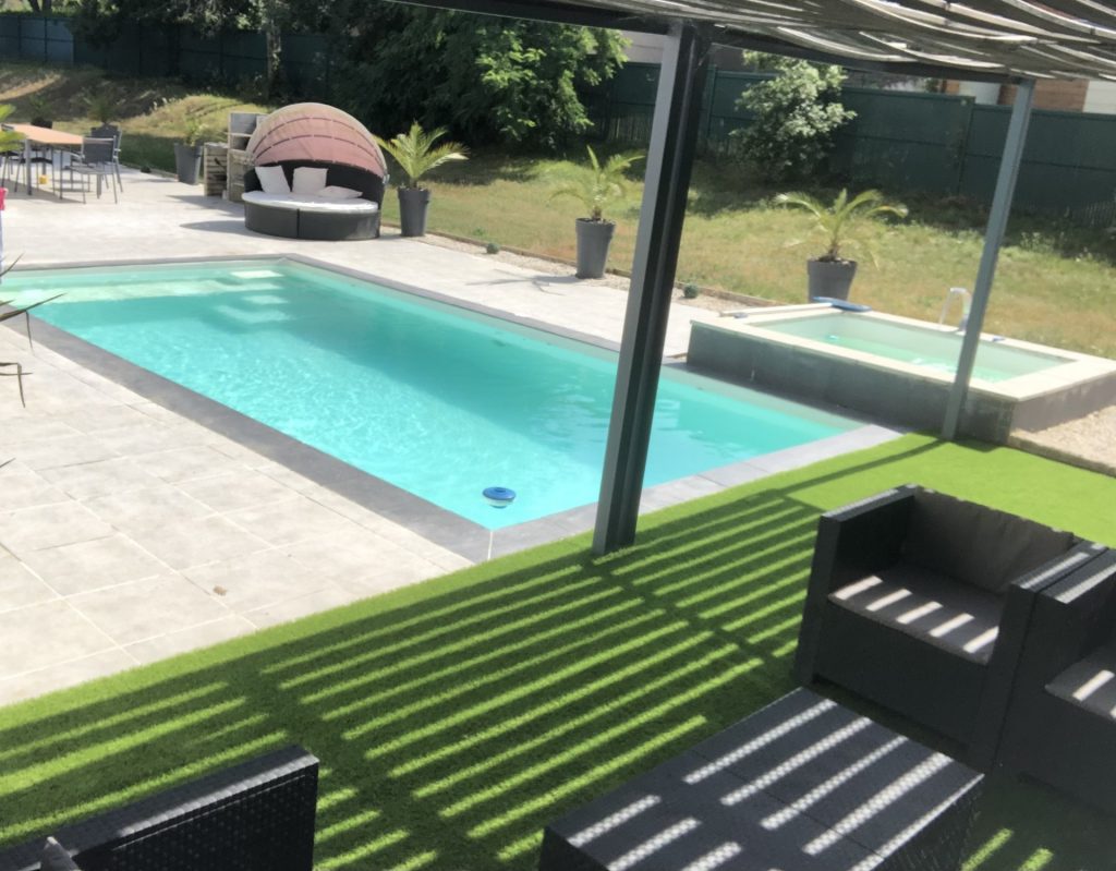 De juin à septembre, selon les conditions météorologiques, vous pourrez également profiter (en option) de la piscine ainsi que de son spa extérieur Sur une terrasse vous offrant un salon de jardin …des transats.. barbecue…